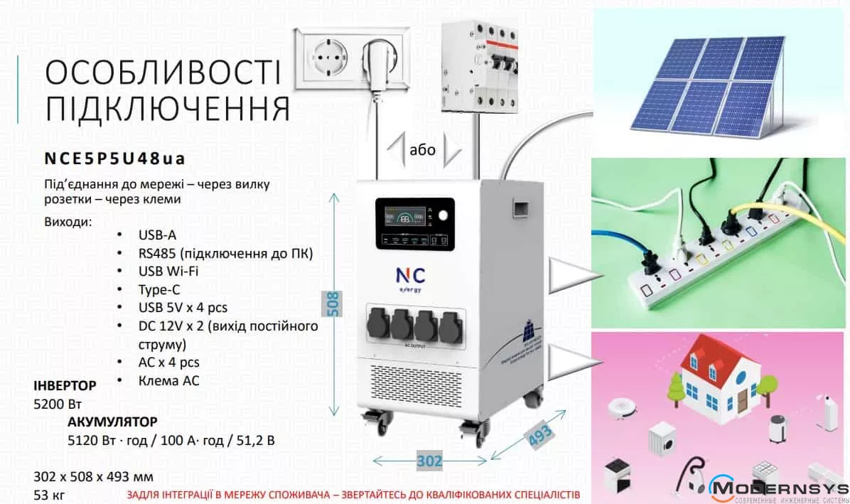 Технічні характеристики: Портативний ДБЖ NC ENERGY все в одному NCE Portable 5х5 NCE5P5U48ua