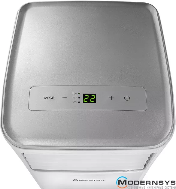 Мобільність Ariston MOBIS – ключова перевага. Для легкого переміщення кондиціонери Ariston MOBIS оснащені коліщатками. Сучасна система керування кондиціонерами із сенсорною панеллю обладнана світлодіодним дисплеєм, що показує встановлену температуру в режимі охолодження або автоматичному режимі. А в режимах осушення чи вентиляції екран показує поточну кімнатну температуру. Також до послуг користувача компактний ергономічний пульт дистанційного керування, який дозволяє зручно керувати всіма актуальними функціями пристрою: температурою, налаштуваннями таймера, напрямом повітряних потоків, швидкістю вентилятора, рівнем шумності.