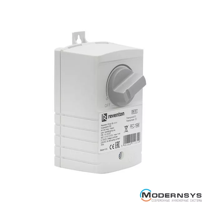Використовується для простого керування роботою водяних тепловентиляторів Reventon із двигунами ЄС. Швидкість вентилятора регулюється ручкою на корпусі приладу. Потенціометр ЄС має додатковий контакт для підключення термостату.