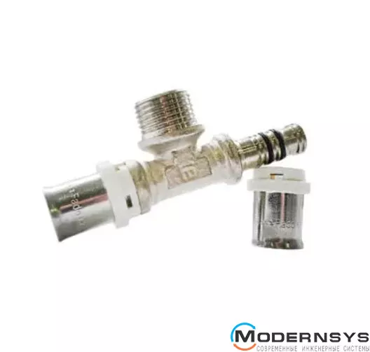 Трійник прес FADO Press із зовнішнім різьбленням - повнопрохідний трійник прес із підвищеним ресурсом. Корпус латунний, нікельований. Приєднання до металопластикових (металополімерних) труб. Різьблення фітинга - трубне, приєднання - зовнішнє. Робочий тиск до 25 бар. Температура зберігання до -30°С.