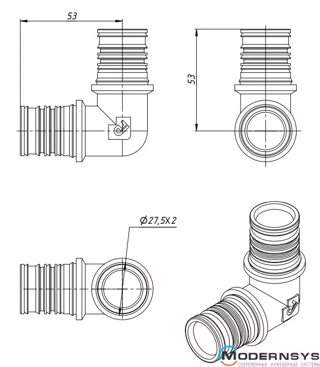 Кутник прес FADO Press - повнопрохідний косинець прес з підвищеним ресурсом. Корпус латунний, нікельований. Поєднання труб металопластикових під кутом 90 градусів. Особливості конструкції виробу, використовувані матеріали зумовили надійність з'єднань, підвищену пропускну здатність, стійкість до температури, механічну міцність. Робочий тиск до 25 бар. Температура зберігання до -30°С.