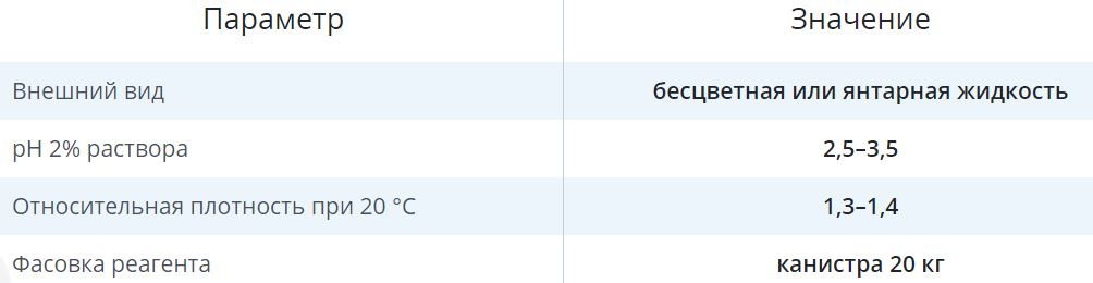 Технічні характеристики для кислотного реагенту Ecosoft Avista RoClean