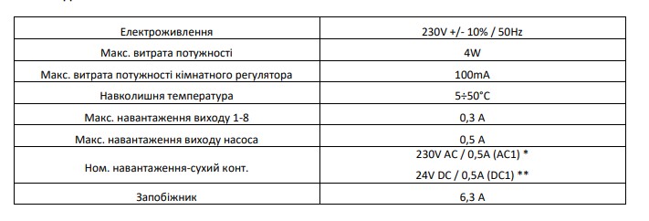 Технічні характеристики: Дрітовий контролер термоелектричних клапанів Tech (Теч) - 8 зон L-5s