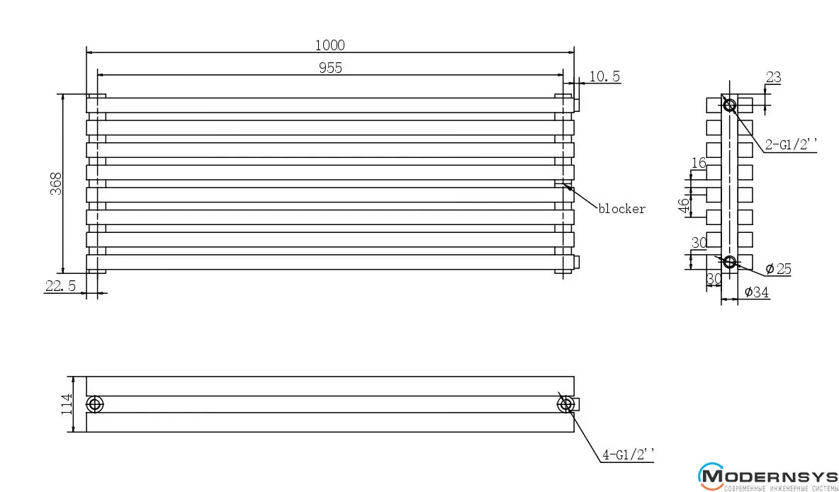 Технічні характеристики: Радіатор ARTTIDESIGN (Арттидизайн) Ancona II G 8/368/1000 білий горизонтальний матовий дизайнерський