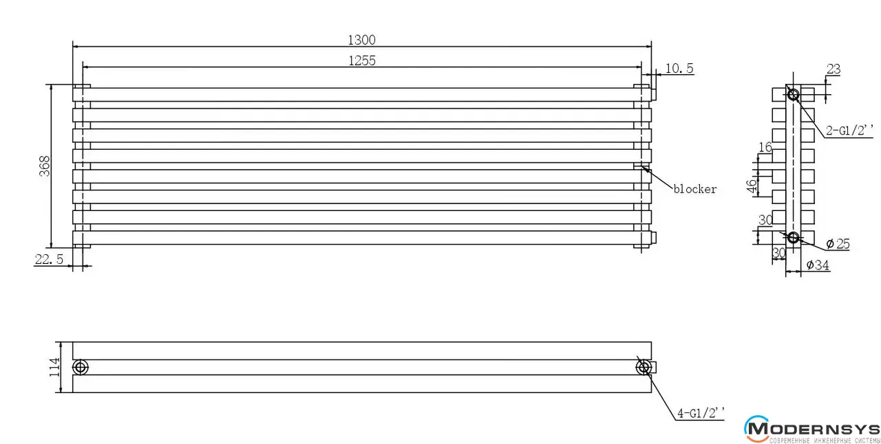 Технічні характеристики: Радіатор ARTTIDESIGN (Арттидизайн) Ancona II G 8/368/1300 білий матовий горизонтальний дизайнерський