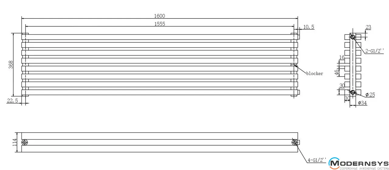 Технічні характеристики: Радіатор ARTTIDESIGN (Арттидизайн) Ancona II G 8/368/1600 чорний матовий горизонтальний дизайнерський