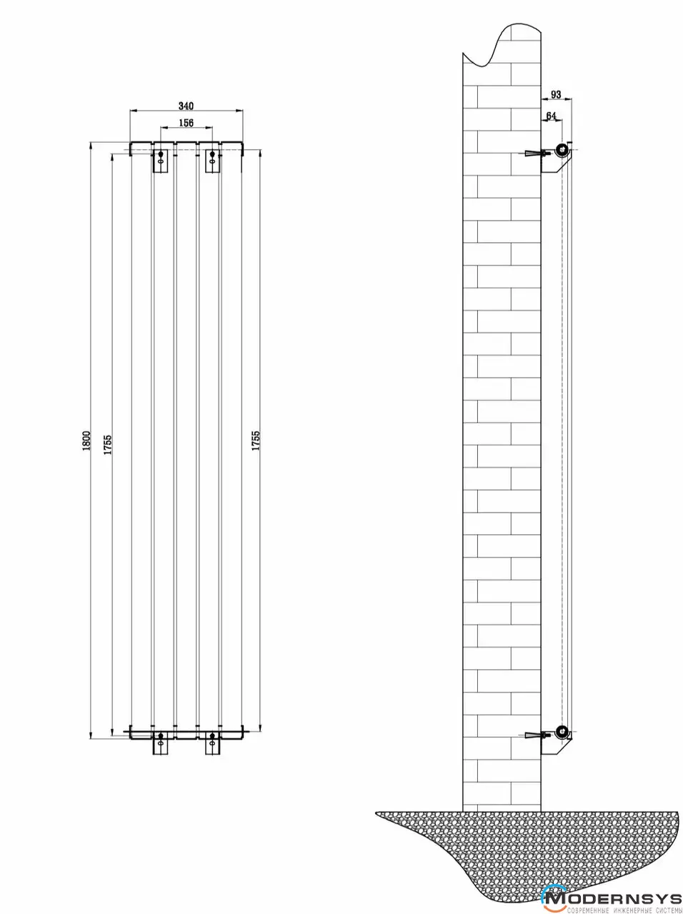 Технічні характеристики: Радіатор ARTTIDESIGN (Арттидизайн) Livorno 5/1800/340/50 сірий вертикальний матовий дизайнерський