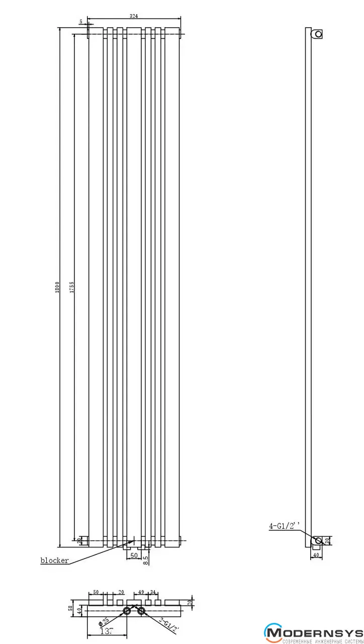 Технічні характеристики: Радіатор ARTTIDESIGN (Арттидизайн) Lucca 7/1800/324/50 чорний матовий дизайнерський вертикальний