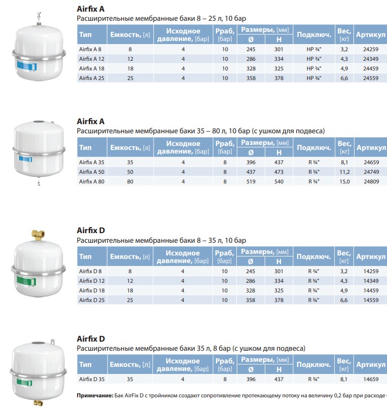 Розширювальні мембранні баки Airfi x A / Airfi x D призначені для компенсації температурного розширення та підтримання тиску в системах санітарного та питного водопостачання — для запобігання спрацьовування запобіжного клапана на групі безпеки (продовжує термін її служби), зберігає чисту воду від нецільових втрат у процесі її нагрівання, демпфує гідравлічні удари, згладжує пікові розбори гарячої води. Відповідають наступним нормативам та стандартам чистої питної води: DVGW, WRAS (65°C), ACS, PZH, KIWA.