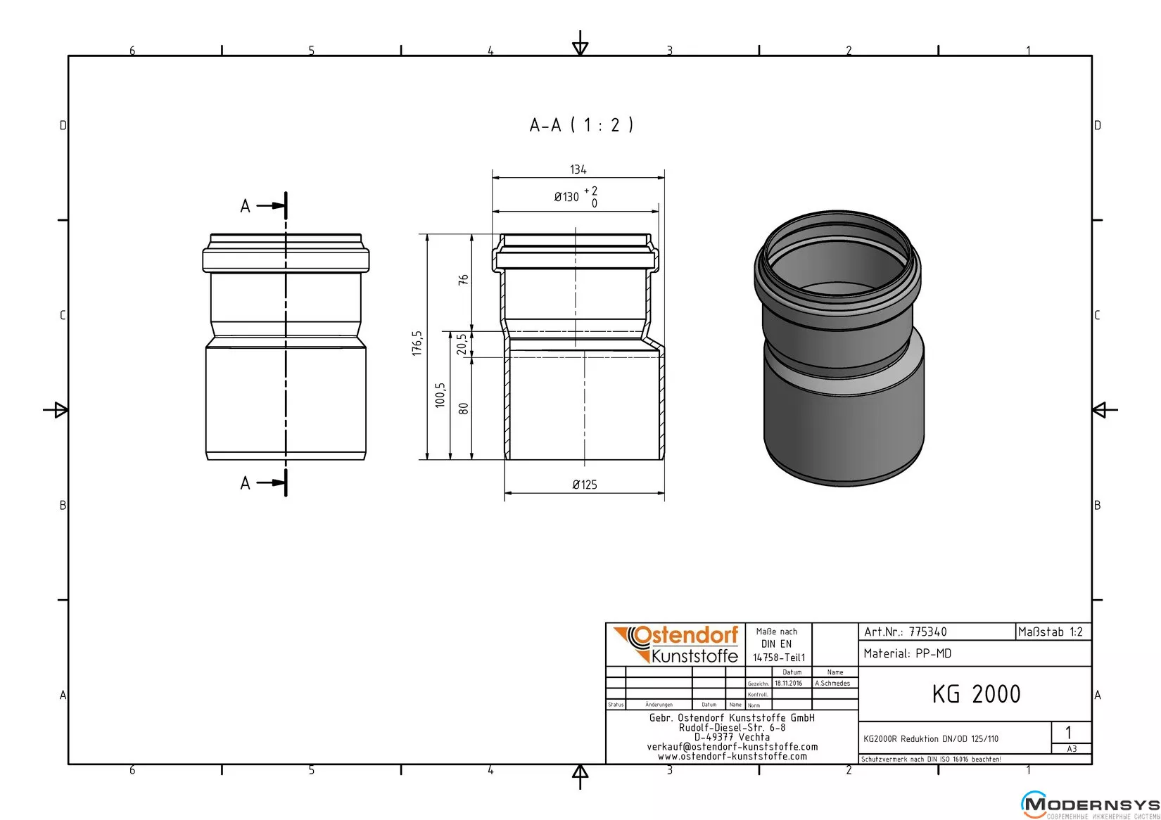 Технічні характеристики: Редукція каналізаційна Ostendorf (Остендорф) KG2000R 125/110 мм