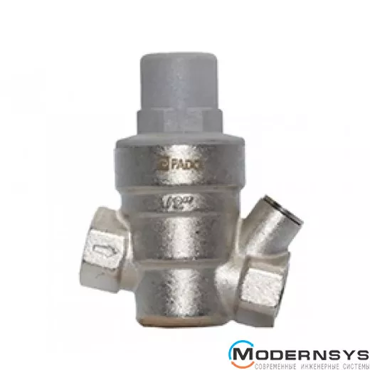 Редуктор тиску FADO з фільтром – повнопрохідний редуктор тиску з фільтром з підвищеним ресурсом. Корпус латунний, нікельований. Різьблення приєднання - внутрішнє/внутрішнє. Для захисту поршневих ущільнень та внутрішньої імпульсної лінії редуктор поєднаний із фільтром механічного очищення. Застосування в системах із робочим тиском до 16 бар. Межі регулювання вихідного тиску – 1,0-5,5 бар. Заводське налаштування - 3 бари. Температура робочого середовища до 130°С.