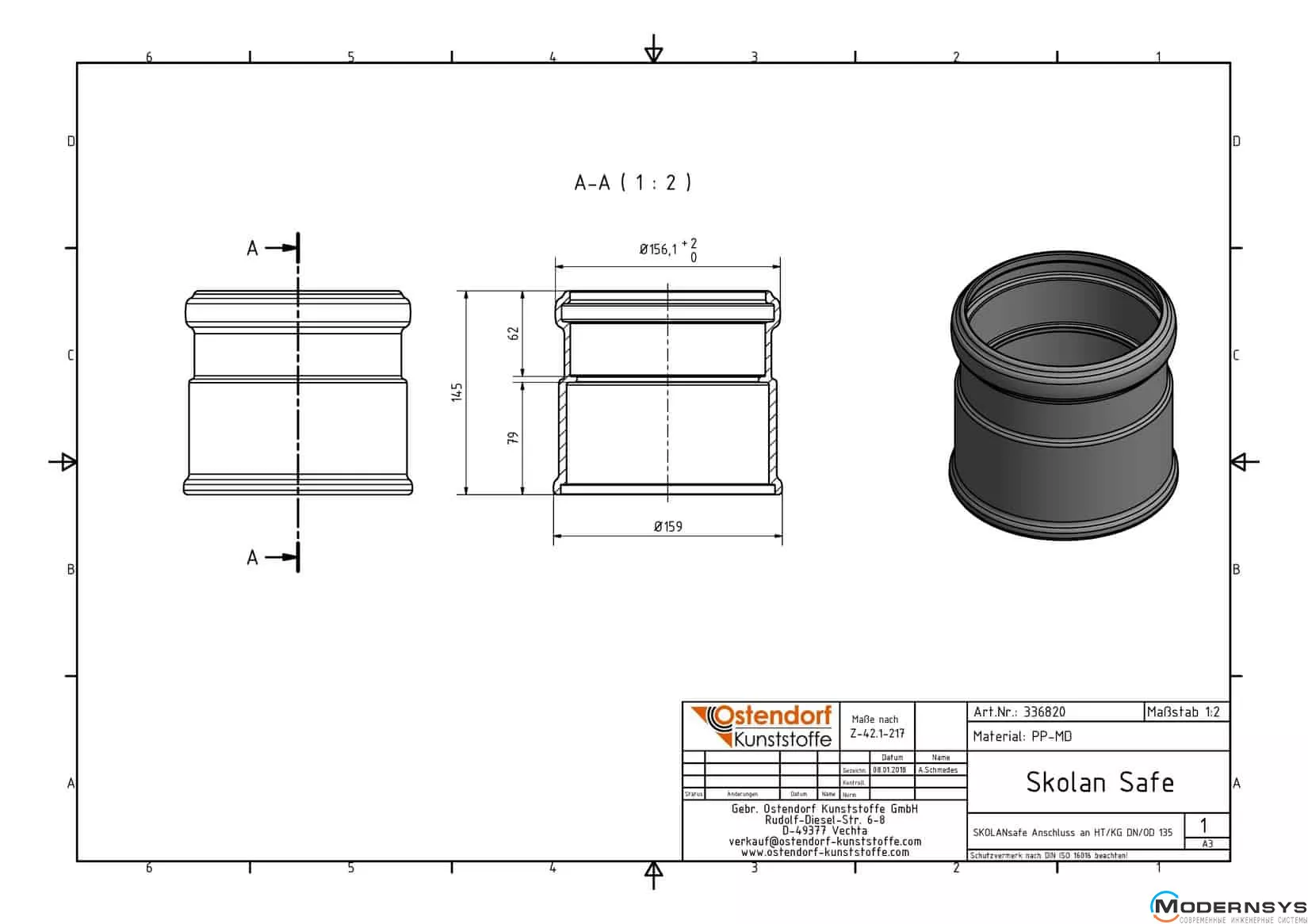 Технічні характеристики: Редукція Ostendorf (Остендорф) Skolan db на каналізацію HT 125 (336820)