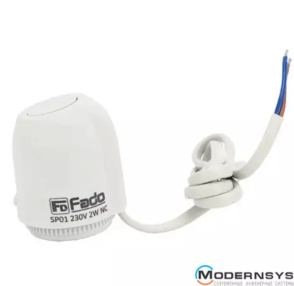 Термопривід FADO NC - для керування радіаторним або колекторним термостатичним клапаном систем водяного опалення (водяна тепла підлога) та охолодження будівель за сигналом від термостата, датчика або контролера. Позначення NC "Normal Closed" - без подачі живлення привід буде нормально закритий, а при подачі живлення він відкриється. З'єднання – М30х1.5. Номінальна напруга - 230 V. Використовуються з термостатичними радіаторними клапанами FADO KT01, KT02 і колекторними блоками KRV02-KRV12 і KRZ02-KRZ12.