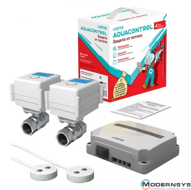 Система контролю протікання води Neptun AquaControl призначена для своєчасного виявлення та локалізації протікання води в системах водопостачання та опалення. Система Neptun заблокує подачу води до усунення причин протікання і проінформує про аварію звуковим і світловим сигналами.