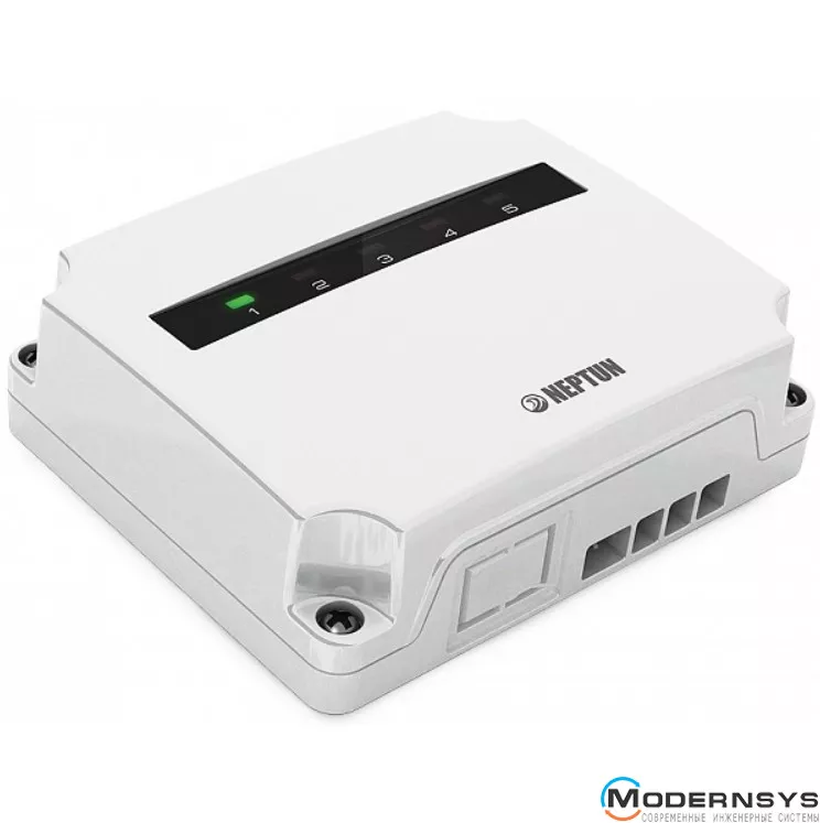 2. Модуль управління (Neptun Base)― отримує сигнал від датчика контролю протікання води та подає команду на кульові крани.
