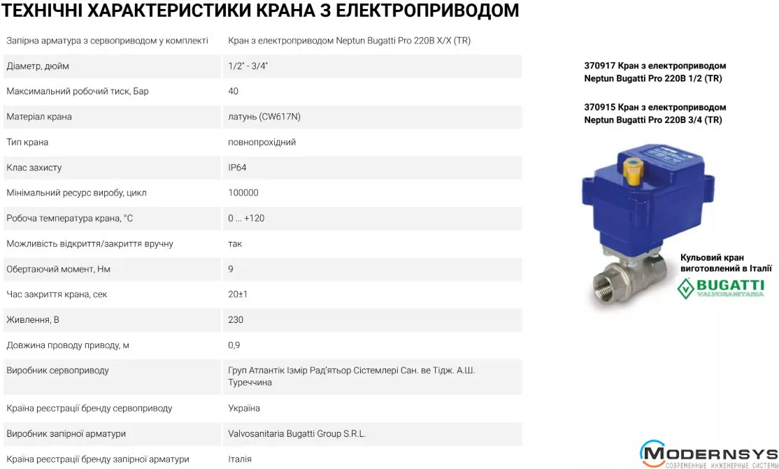 - Кран з електроприводом Neptun Bugatti Pro 220В 1/2 (TR) 1 шт