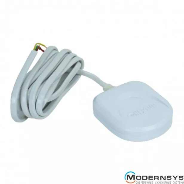 - Датчик протікання води. Невеликий пристрій прямокутної форми із закругленими кутами, білого кольору. Встановлюється на підлогу або інші поверхні, де можливе протікання води. До системи підключається за допомогою дроту. Розміри (ВхШхГ) – 52×45×14 мм.