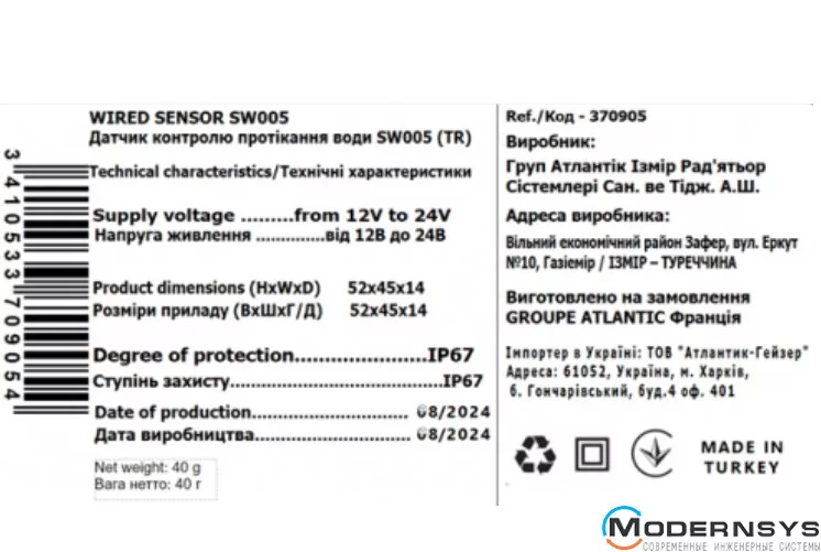 - Датчик контролю протікання води SW005 (TR) 2 шт