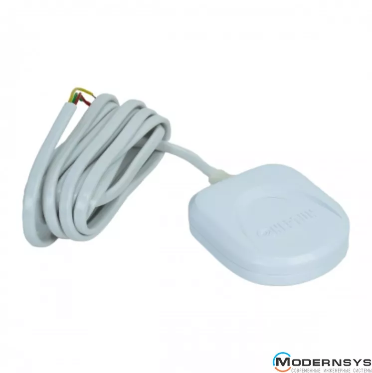 - Датчик протікання води. Невеликий пристрій прямокутної форми із закругленими кутами, білого кольору. Встановлюється на підлогу або інші поверхні, де можливе протікання води. До системи підключається за допомогою дроту. Розміри (ВхШхГ) – 52×45×14 мм.