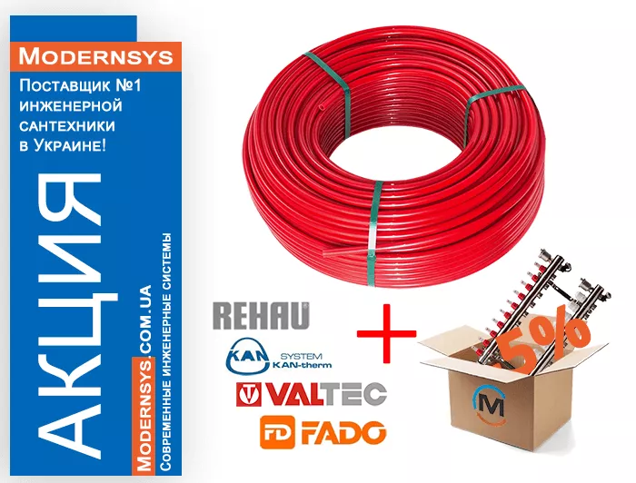При покупці труби для теплої підлоги від 500 метрів Ви можете отримати знижку на колектор -5%.