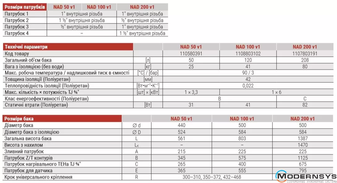 Технічні характеристики: Теплоакумулятор Drazice (Дражица) NAD 200 v1 (TJ 6/4")