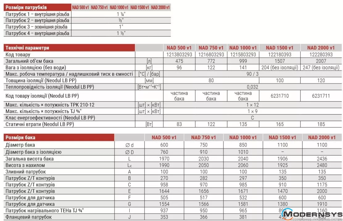 Акумулююча ємність NAD v1 виробляється з можливістю розміщення від одного до трьох фланців. Фланець з міжцентровою відстанню 210 мм болтів можна використовувати для монтажу фланцевого електричного ТЕНу типу TPK. У стандартному виконанні фланець заглушено.