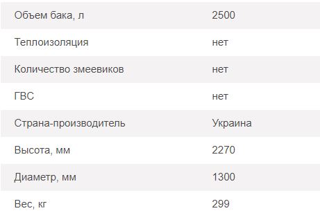 Технічні характеристики для теплоакумулятора Kuydych EAМ-00-2500