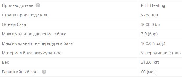 Технічні характеристики для теплоакумулятора Kuydych EAМ-00-3000