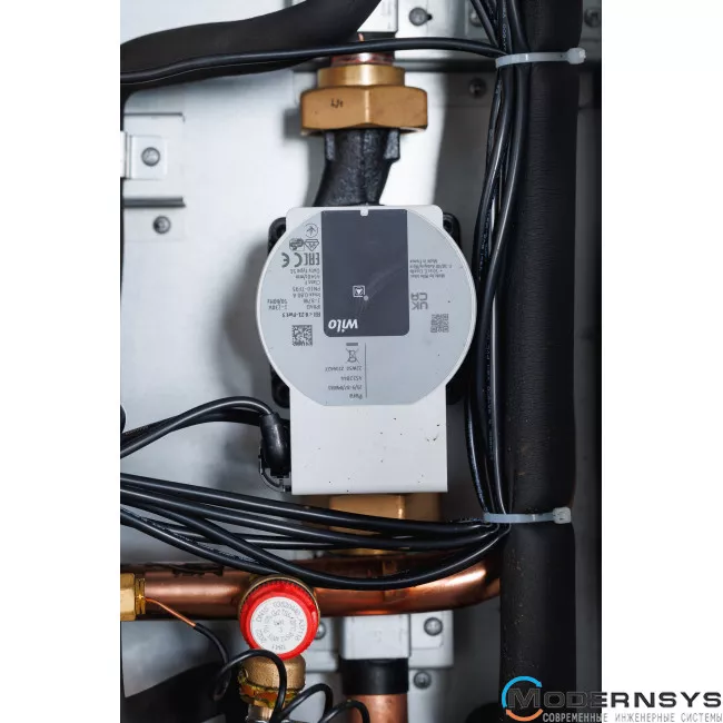 Основним елементом системи є зовнішній блок від NC clima, проте її серцем можна вважати гідравлічний модуль, який генерує процес опалення, виготовлення гарячої води та чітке управління обладнанням. Насоси прямої та змішаної зони оптимізують розподіл теплоносія, а буферна ємність стабілізує роботу системи. Триходовий та двоходовий клапани керують потоком теплоносія, забезпечуючи безперебійну циркуляцію до радіаторів та баку ГВП. Завдяки температурним датчикам система контролює всі важливі параметри, що гарантує її стабільну роботу навіть за низьких температур. Обладнання підходить як для автономного використання у будинках до 100 м2, так і у поєднанні з іншими джерелами тепла для площ до 200 м2.