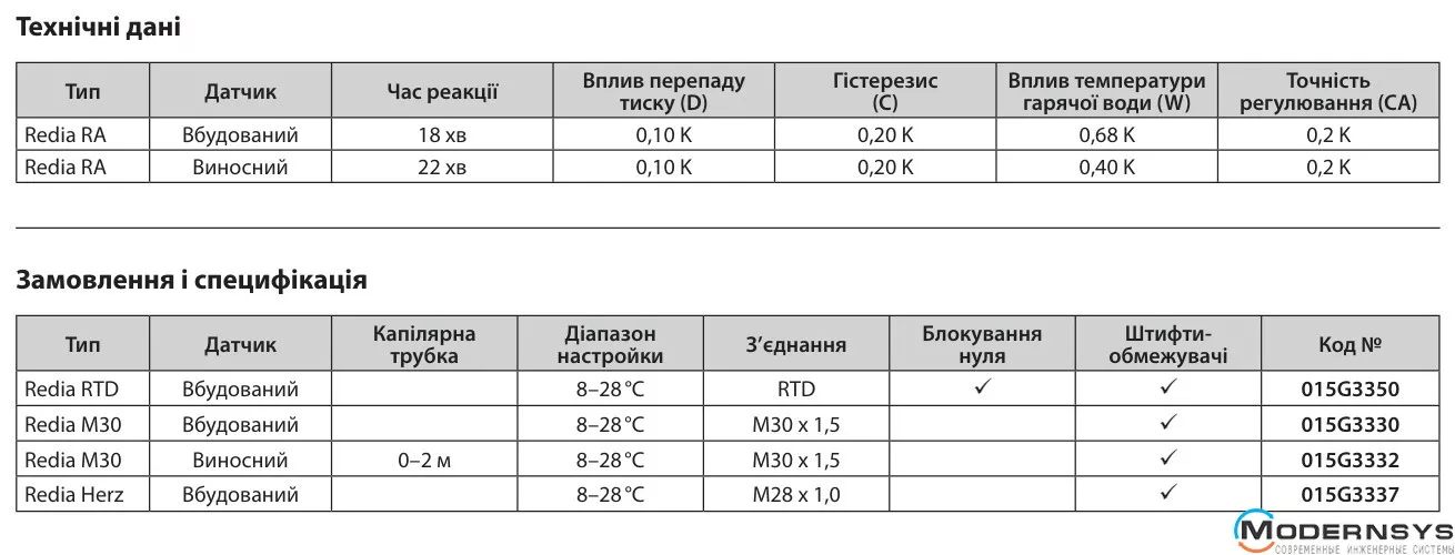 Технічні характеристики: Термоголовка Danfoss (Данфос) Redia M30x1.5 BIS