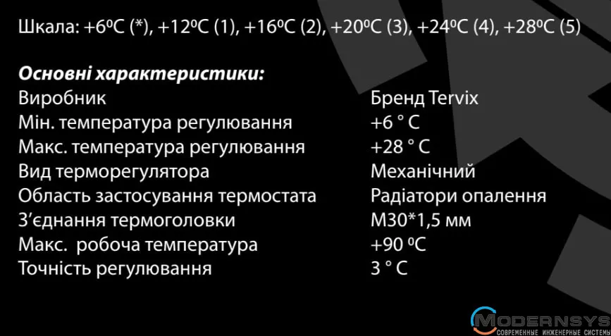 Технічні характеристики: Термоголовка радіаторна М30х1,5,6-28С Tervix (Тервикс) Pro Line TR 1