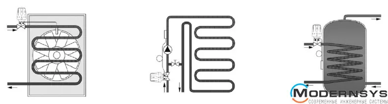 Термоголовка радіаторна монтується на клапані вузла змішування, клапані наповнення бойлера або іншому клапані.