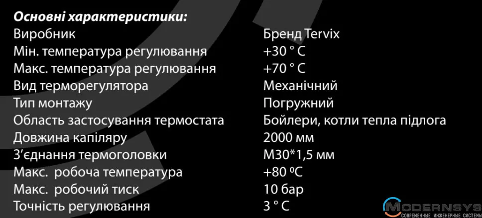 Технічні характеристики: Термоголовка з виносним датчиком М30х1, 5, 30-70С Tervix (Тервикс) Pro Line TR 2