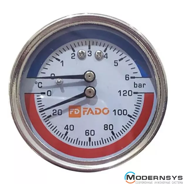 Технічні характеристики: Термоманометр FADO (Фадо) фронтальний Д63 ?" 120 ° С 6 бар