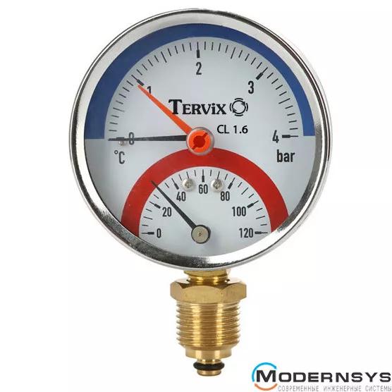 Технічні характеристики: Термоманометр Tervix (Тервикс) Pro Line 80/0-10 бар, 0-120 С, радіальний, з монтажним клапаном R1/2"