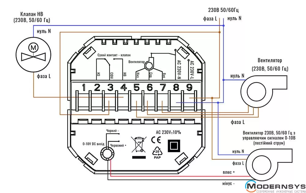 - Управління вентиляторм на 230В чи 0-10В.