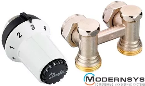 Комплект термостатичний Danfoss RAE-K+RLV-KS 1/2" кутовий - це набір з двох пристроїв, призначений для підключення радіатора опалення та регулювання його прогріву, з метою встановлення потрібної температури в приміщенні. Набір складається з термоголовки типу RAE-K з вбудованим датчиком, а також запірним клапаном типу RLV-KS.При цьому термостатичний комплект для установки радіатора Данфос РАЕ-К+РЛВ-КС 1/2" кутовий призначений для підключення виключно до двотрубної системи опалення. У свою чергу ця система може складатися з мідних, полімерних або металополімерних труб. Також термостатичний комплект кутовий Danfoss RAE-K+RLV-KS 1/2" для монтажу радіаторів дозволяє відключати опалювальний прилад для його подальшого демонтажу або обслуговування без попереднього зливу теплоносія з усієї системи обігріву. Його численні плюси можна оцінити, ознайомившись з розміщеною нижче інформацією
