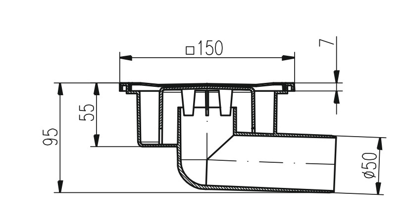Технічні характеристики: Трап із горизонтальним випуском MCH (МЦШ) 326 Р гідрозатвор