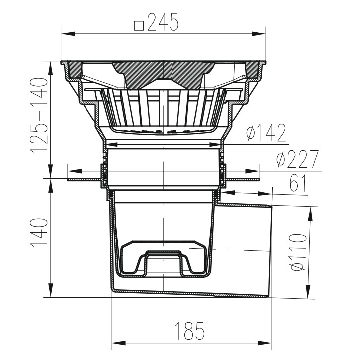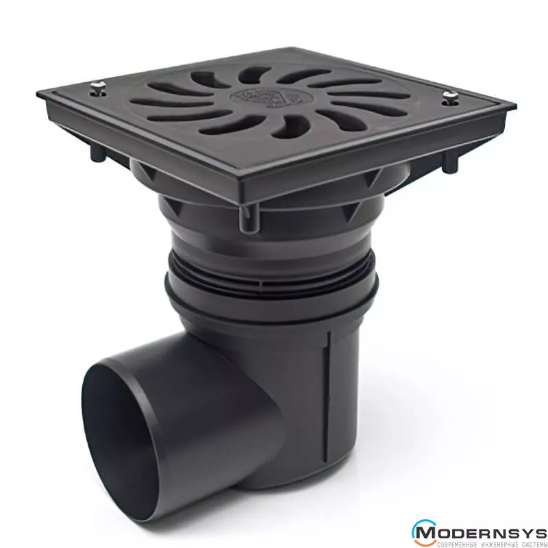 Каналізаційний трап із бічним зливом D 110Зроблені в декількох варіантах, з сухим затвором, з водяним затвором і з поплавком НЕПТУН. Вироби 429s з масивною чавунною решіткою, 429sz з масивною чавунною решіткою та двома шурупами з нержавіючої сталі A2, 6,3 x 38 мм. Вироби 437P випускаються з пластиковими гратами і 437Pz випускаються з пластиковими гратами та двома шурупами з нержавіючої сталі A2, 6,3 x 38 мм. Трап призначений для приєднання каналізаційних труб діаметрів D110 або D160 мм. Вони мають комір для з'єднання водонепроникної мембрани до корпусу зливного трапу. Зроблено з поліпропілену з UV стабілізаторами, морозостійкий матеріал з термостійкістю до 90°С. Чавун DIN 1691. Навантаження EN 124, B 125 (12500 кг). і пластикові грати зроблені з поліпропілену, стандарт EN 1253 L15 (1 500 кг), з термостійкістю до 90 °C, з поплавком Нептун до 70 °C.