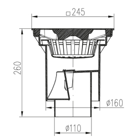 Трап для вулиці однокорпусний MCH використовується для відведення води з великих територій - паркувань, площ, доріг тощо. Стійкий до погодних умов та витримує температуру до 90°C. Трап має сухий сифон із клапаном для блокування запахів каналізації та кошик для уловлювання сміття та попередження засмічення каналізації.