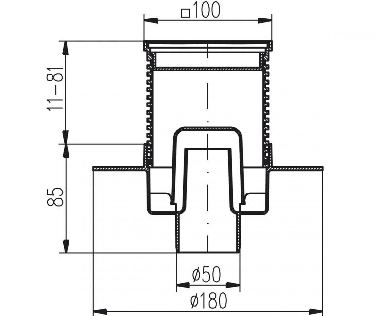 Технічні характеристики: Трап із вертикальним випуском MCH (МЦШ) 414 L гідрозатвор