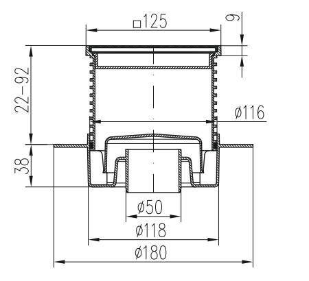 Технічні характеристики: Трап із вертикальним випуском MCH (МЦШ) 420 NL гідрозатвор