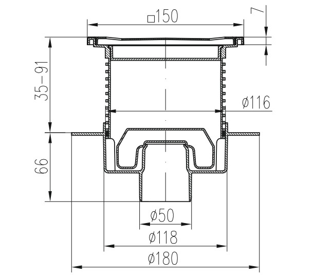 Двокорпусний трап MCH із сухим сифоном Neptun, вертикальний випуск DN50, нержавіюча решітка 122х122 мм з рамою. Двокорпусний трап із сухим сифоном Neptun, не пропускає каналізаційні запахи у приміщення навіть після висихання води у сифоні. Встановлюється в душових, санвузлах та котельнях. Зручний для застосування у санвузлах, що рідко використовуються. З вертикальним підключенням та фланцем для гідроізоляції. Має компактні монтажні розміри з можливістю регулювання висоти монтажу +/- 53 мм. Грати виготовлені з полірованої нержавіючої сталі товщиною 1,5 мм, завдяки чому трап має привабливий зовнішній вигляд і тривалий термін служби. Внутрішня розухилка решітки підвищує пропускну здатність трапу та прискорює збирання води з поверхні підлоги.