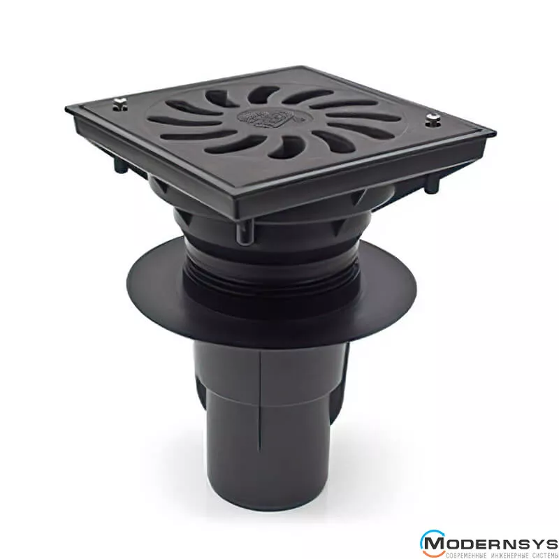 Каналізаційний трап із бічним зливом D 110Зроблені в декількох варіантах, з сухим затвором, з водяним затвором і з поплавком НЕПТУН. Вироби 429s з масивною чавунною решіткою, 429sz з масивною чавунною решіткою та двома шурупами з нержавіючої сталі A2, 6,3 x 38 мм. Вироби 437P випускаються з пластиковими гратами і 437Pz випускаються з пластиковими гратами та двома шурупами з нержавіючої сталі A2, 6,3 x 38 мм. Трап призначений для приєднання каналізаційних труб діаметрів D110 або D160 мм. Вони мають комір для з'єднання водонепроникної мембрани до корпусу зливного трапу. Зроблено з поліпропілену з UV стабілізаторами, морозостійкий матеріал з термостійкістю до 90°С. Чавун DIN 1691. Навантаження EN 124, B 125 (12500 кг). і пластикові грати зроблені з поліпропілену, стандарт EN 1253 L15 (1 500 кг), з термостійкістю до 90 °C, з поплавком Нептун до 70 °C.