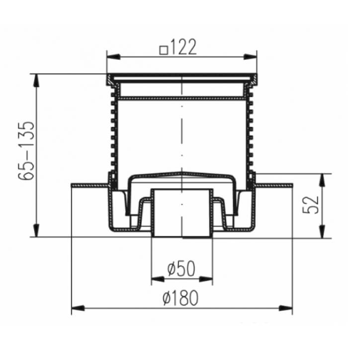 Технічні характеристики: Трап із вертикальним випуском MCH (МЦШ) G 420 NXL сухий сифон
