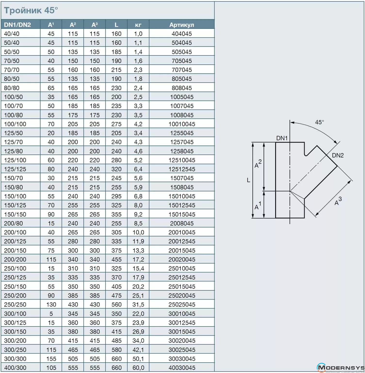 Технічні характеристики: Трійник із чавуну SML 45* DN250x150мм RSP (РСП) 25015045