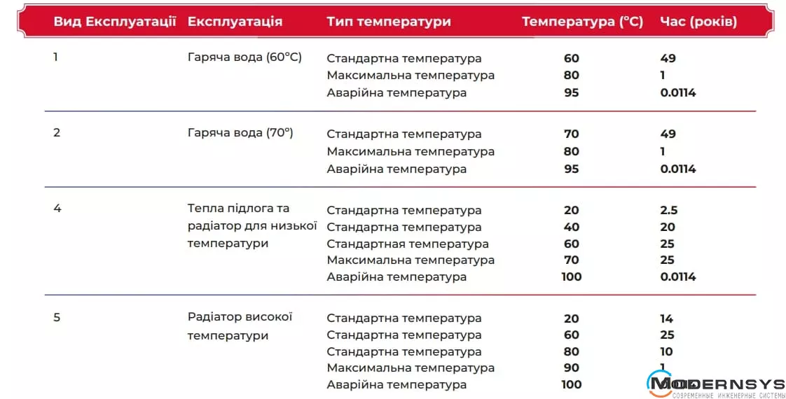 - Термічне лінійне подовження труб PE-RT забезпечує стабільність та надійність у роботі.