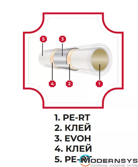 - Кисневий бар'єр, що надійно захищає внутрішню частину труби від проникнення повітря.