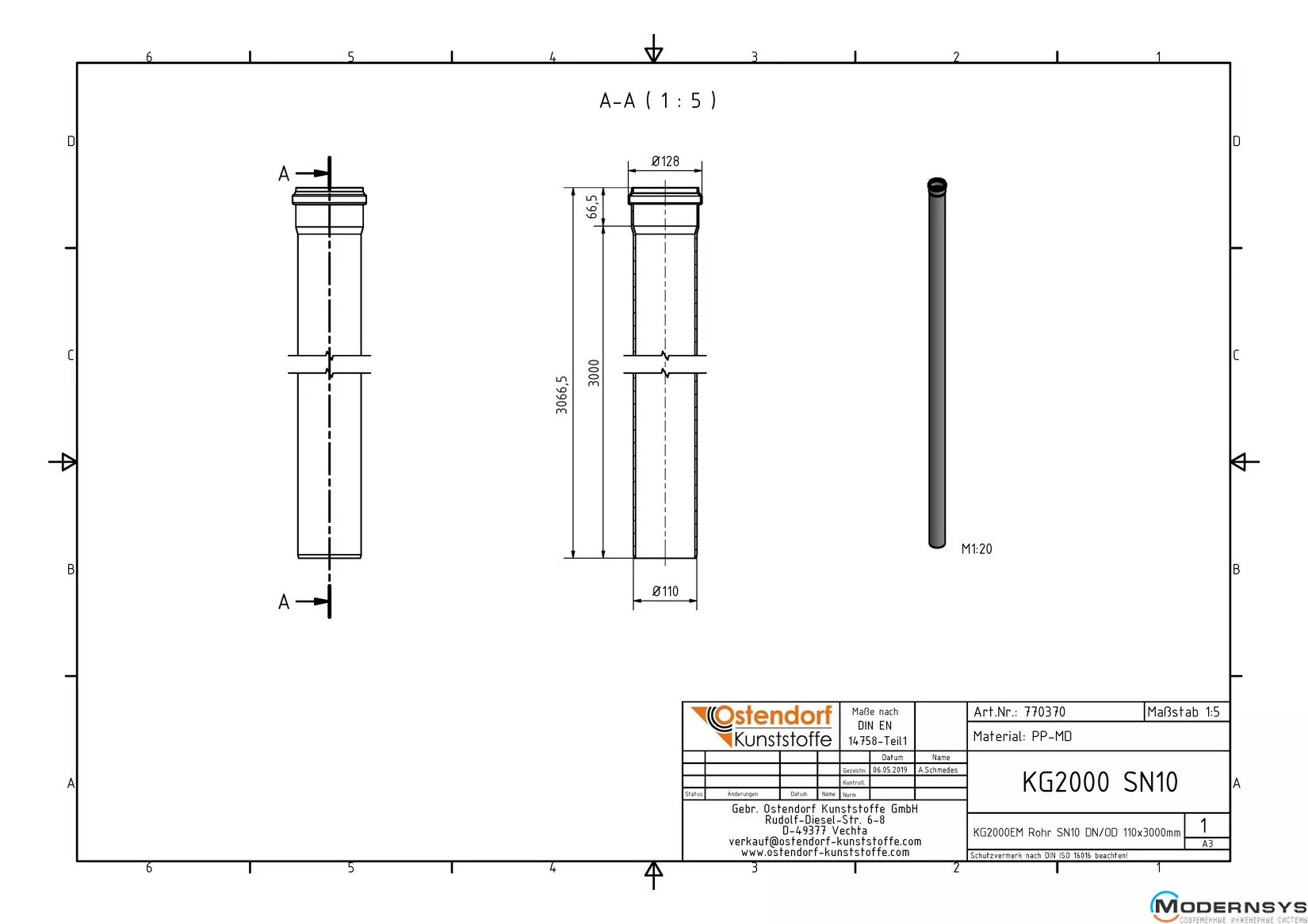Технічні характеристики: Труба каналізаційна Ostendorf (Остендорф) KG2000EM 110х3000 мм