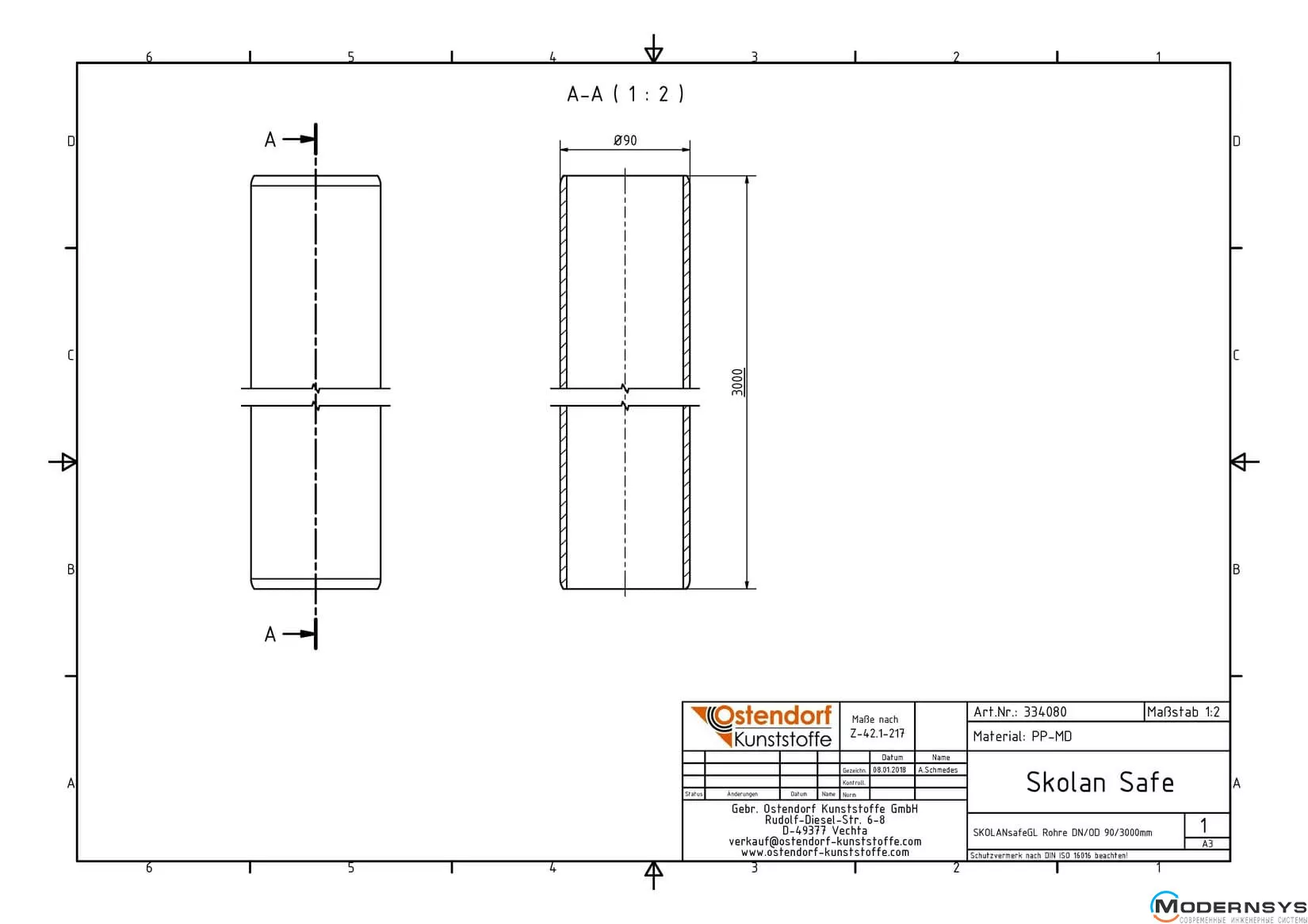 Бренд: Ostendorf; Тип товару: Труба; Вид каналізації: Внутрішня; Тип каналізації: Безшумна; Колір: Світло сірий; Діаметр (мм): 90; Товщина стінки (мм): 4.5; Довжина (мм): 2000; Матеріал: Поліпропілен PPR; Виробник: Німеччина